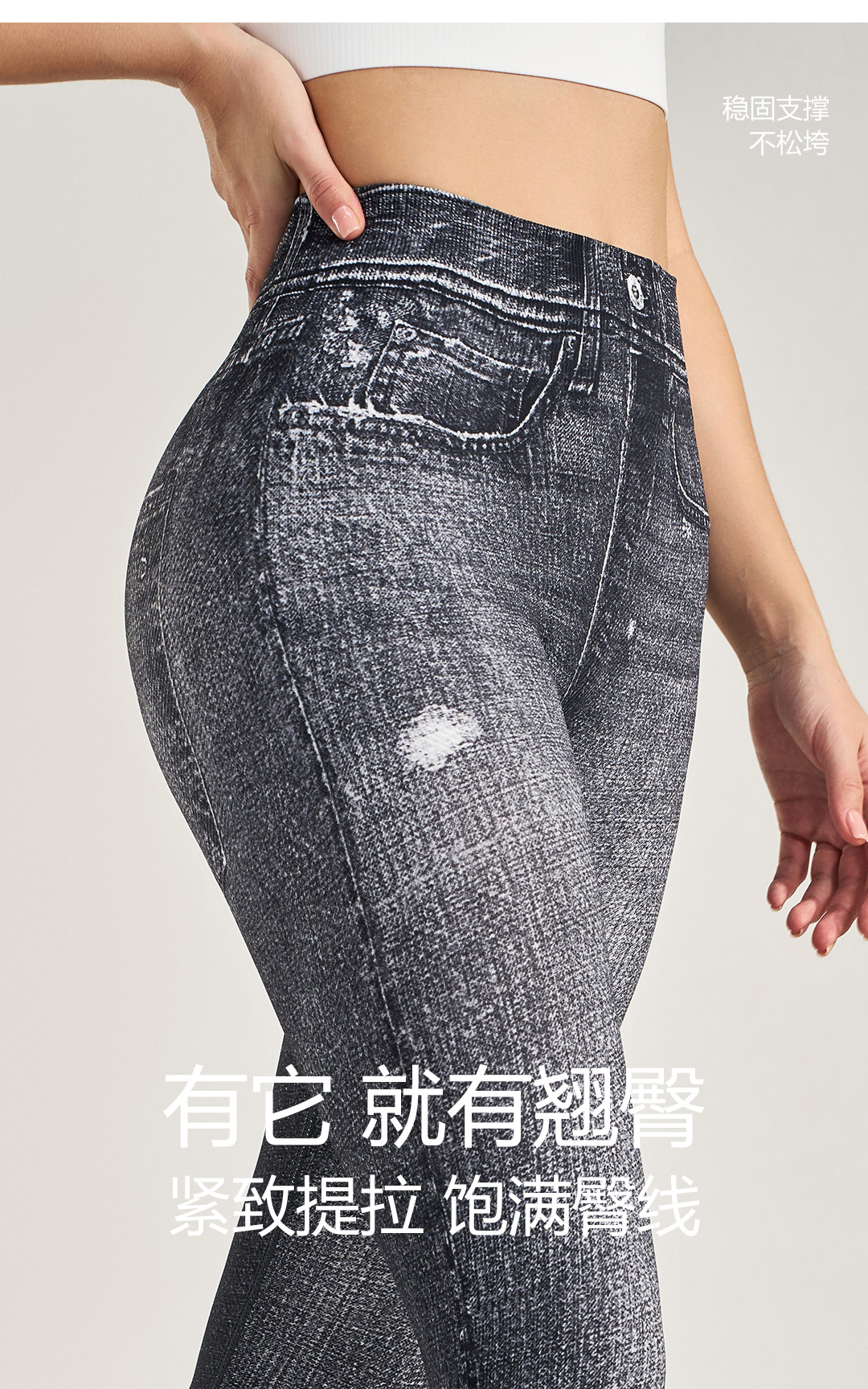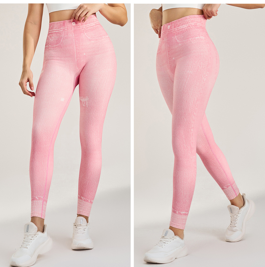 Otoño e invierno deportes al aire libre fitness imitación jeans yoga leggings ajustados cintura alta levantamiento de cadera pantalones alicrados